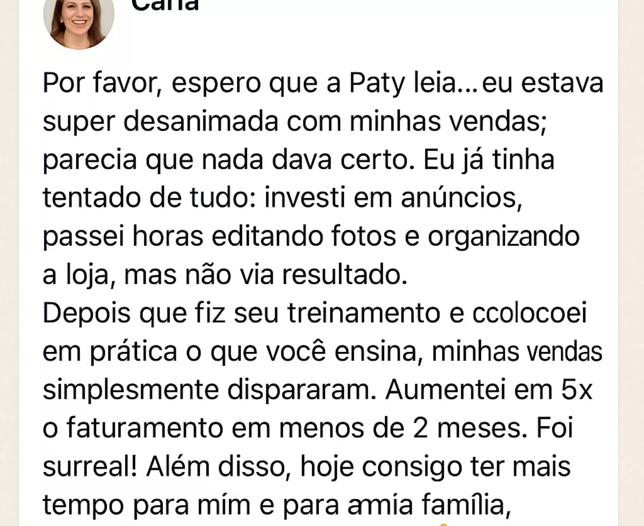 Didática de quem vive o dia a dia do negócio e já tem mais de 5 mil alunos satisfeitos: Como empreendedora, ensino exatamente o que funciona para quem vende produtos, sem vocabulários técnicos.